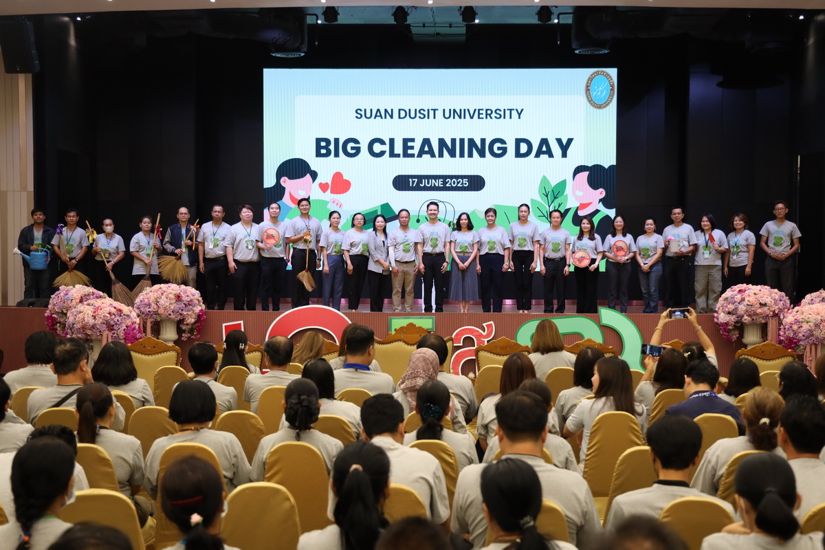 รองศาสตราจารย์ ดร.ชนะศึก นิชานนท์ รองอธิการบดีฝ่ายบริหาร วิจัย และนวัตกรรม เป็นประธานกล่าวเปิดโครงการ SDU Big Cleaning Day สร้างสรรค์สิ่งแวดล้อม และป้องกันโรคไข้เลือดออก โดยมี นายพรรษวัชร อุดมเสฏฐ์ชัย ผู้อำนวยการกองอาคารและสถานที่ กล่าวรายงานถึงวัตถุประสงค์ในการจัดงาน และมีกิจกรรมทำความสะอาดกำแพงรั้วบริเวณโดยรอบมหาวิทยาลัย ทำความสะอาดภายในสำนักงาน ทำความสะอาดขัดล้างพื้นถนน และทางเดิน ปลูกต้นภายในมหาวิทยาลัยฯ ในวันที่ 17 มิถุนายน 2568 ณ อาคารรักตะกนิษฐ ชั้น 1 มหาวิทยาลัยสวนดุสิต